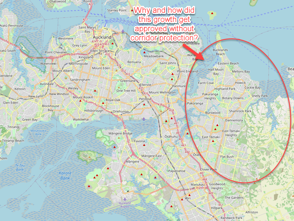 Of course once the concrete is laid down, it is often very difficult and costly to fix it later on especially if we haven’t reserved any corridors. Look at the Eastern Busway. We ended up having to acquire and demolish houses at huge cost. — I for one am going to say up front this project isn’t going to be the saviour of East Auckland as we believe it is going to be. Too many “at-grade” intersections, unlike the Northern Busway.
